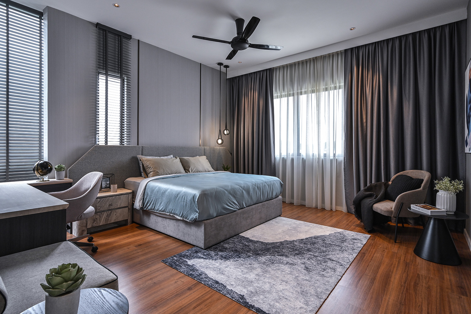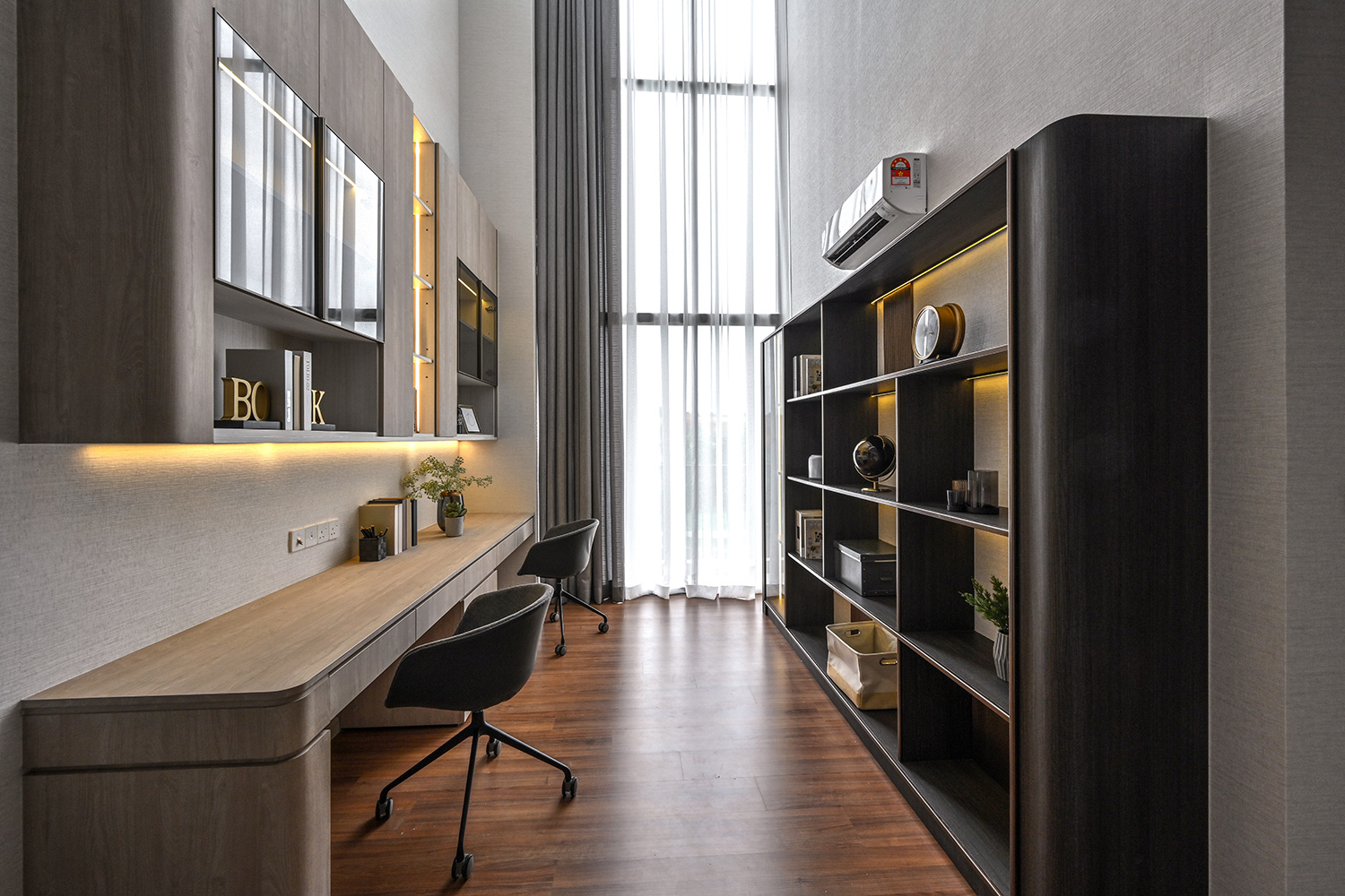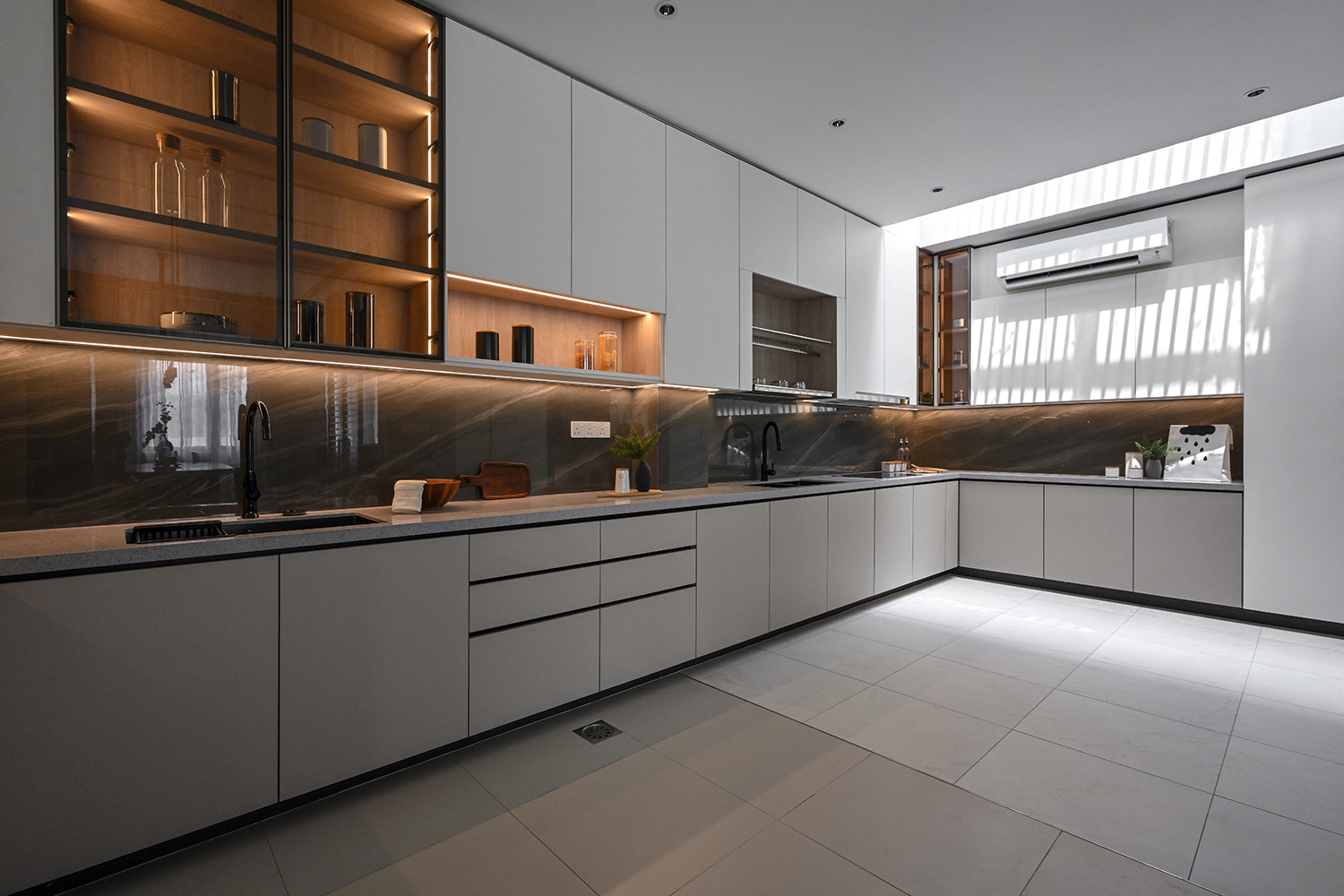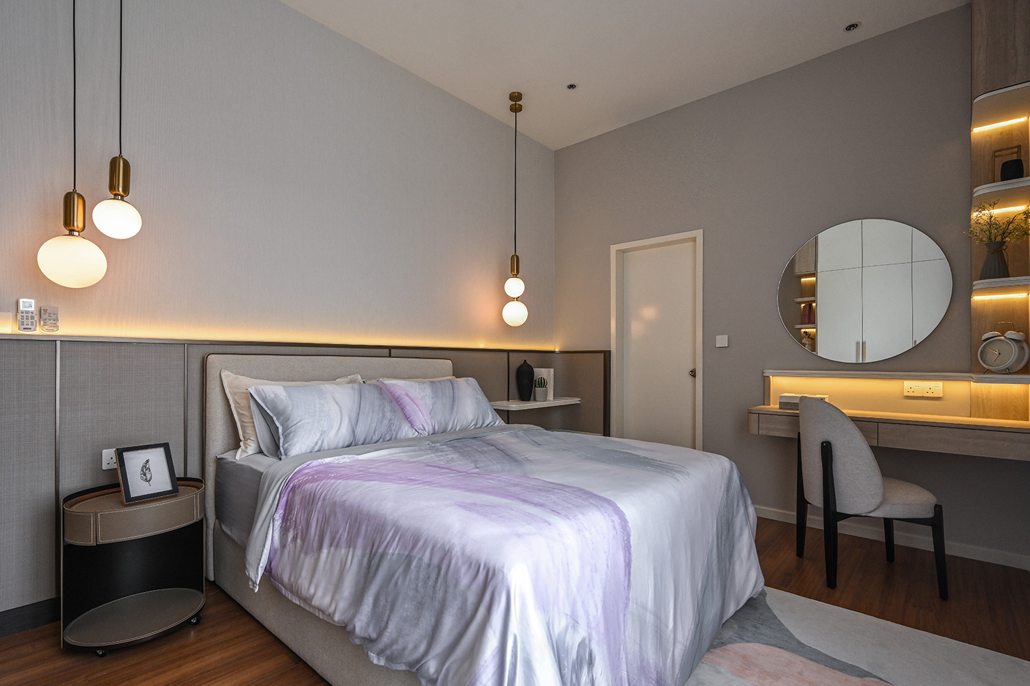 The infusion of contemporary classical elements elevates the aesthetic appeal of the interior, ensuring a timeless allure. Carefully selected loose furniture further enhances the overall ambiance, contributing to a sense of opulent living. Subtle classical details adorn the ceiling and walls, adding a touch of minimalistic sophistication that enriches the atmosphere while casting shadows that embody a premium lifestyle.