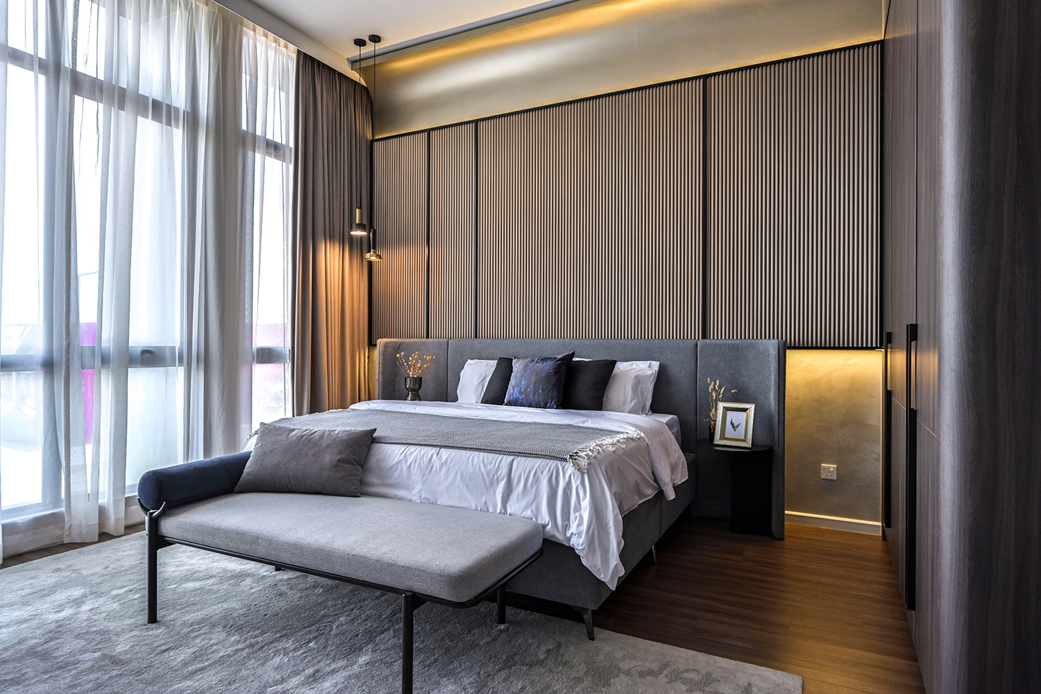 With seamless built-in features and subtle, ambient lighting, this design transforms your home into a sanctuary of comfort and class. It's the ultimate statement in sophisticated, minimalist luxury.