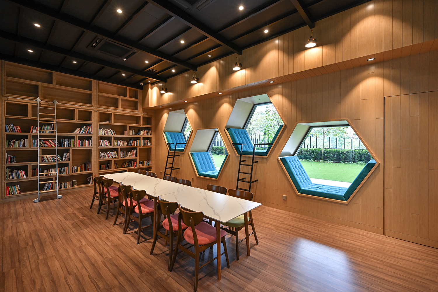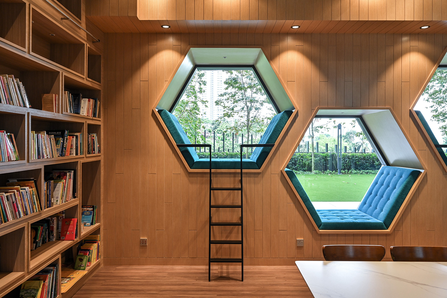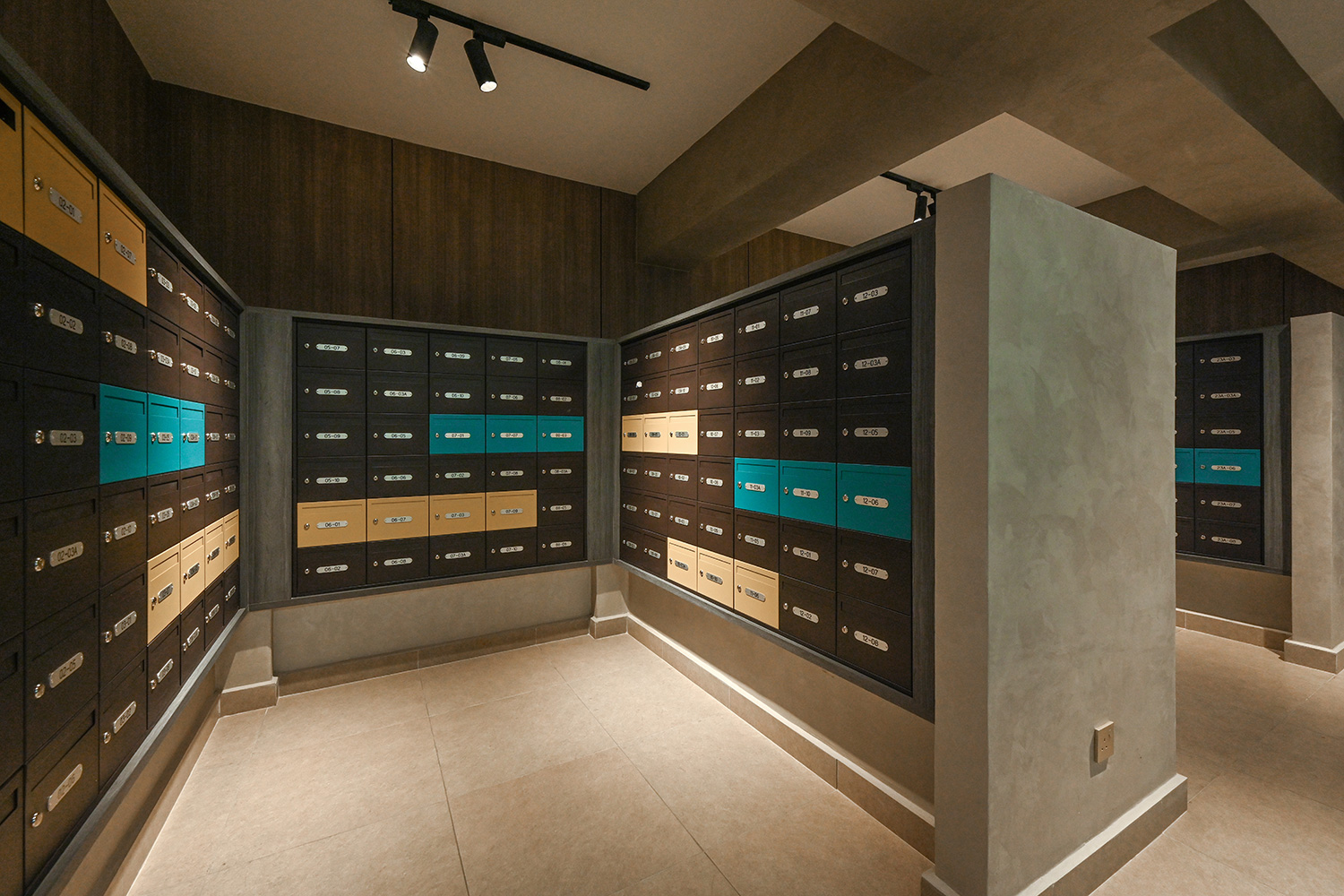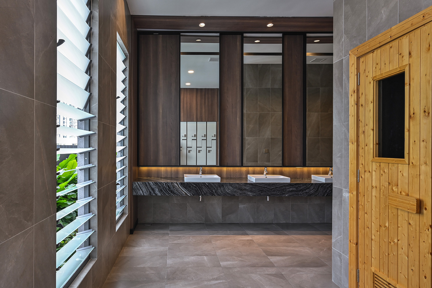 The design embraces clean architectural lines, neutral tones, and rich textures that complement the residence’s overall modern aesthetic. Premium materials, including marble-patterned flooring and warm timber accents, add depth and character, while soft ambient lighting enhances the inviting atmosphere. Every detail, from the selection of finishes to the spatial flow, is carefully curated to create refined environments where residents can relax, connect, and enjoy an elevated living experience.